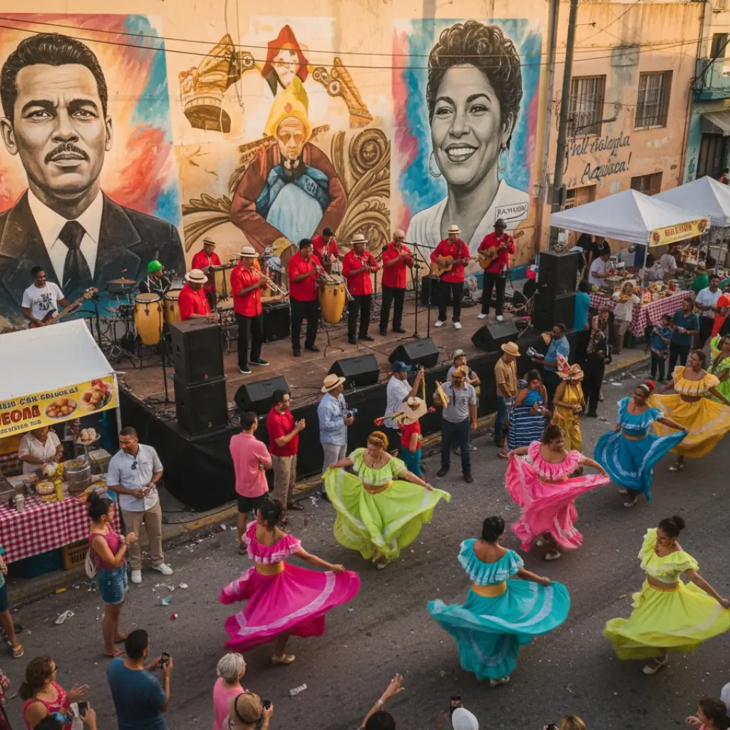 Perhaps the most iconic example is Little Havana, the Cuban-American heart of Miami, where art and heritage intersect on every corner. Each month during Viernes Culturales (Cultural Fridays), Calle Ocho turns into an open-air arts festival celebrating Cuban and Latin American culture. “Local artists have an opportunity to share their culture and traditions through art” at this event. Strolling down the street, one encounters vibrant murals and mosaics depicting Cuban symbols – domino players, coffee cups, tropical fruits, cigars – alongside paintings of Cuban icons like poet José Martí and the legendary singer Celia Cruz.
